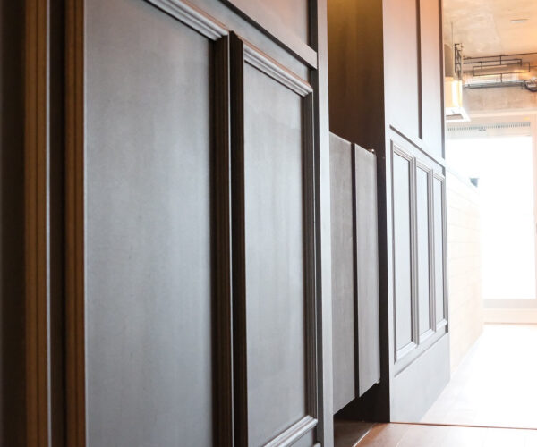 エコカラットはダークカラーを使用、間接照明やドアもブラックを基調とし、重厚で上質な空間に仕上がりました。