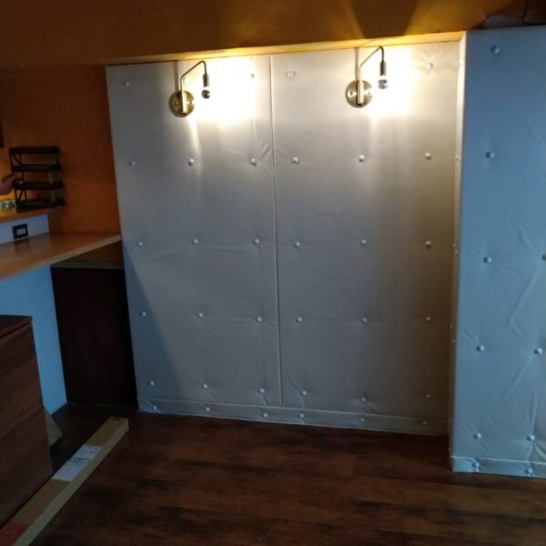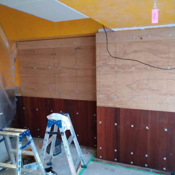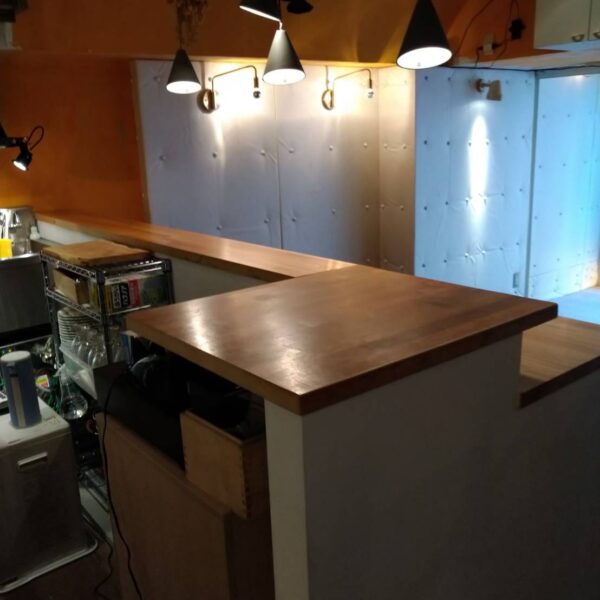 以前カウンター取付させて頂きましたオーナ-様からピアノを設置したいとのご要望があり防音対策に吸音パネルを天井、壁に取付させて頂きました。外部サッシにはインプラスを設置し防音効果と断熱効果をもたらしました。