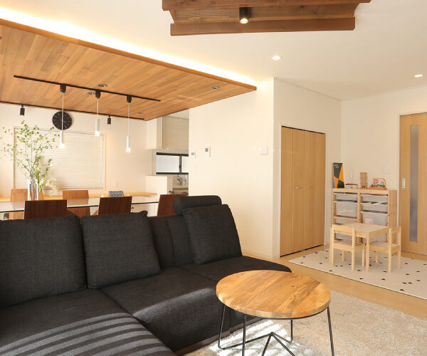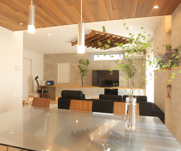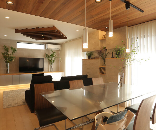 始めは何もない天井、壁でしたが、収納力の高い造作テレビ台、お子様がリビングで勉強できるような造作棚も一から設計し施工いたしました。エコカラットを使ったニッチ造作棚もリビングの雰囲気をガラリと変えることができています。また、間接照明、ダウンライトを使うことでお部屋がさらに明るくなり、家族が集まりたいと思える過ごしやすいリビングダイニングを造ることができました。