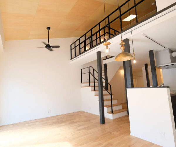 マンションの一室でありながら在来工法にて二階の空間を造り、空間に広がりと機能性を持たせました。