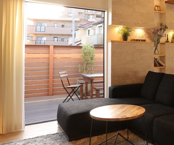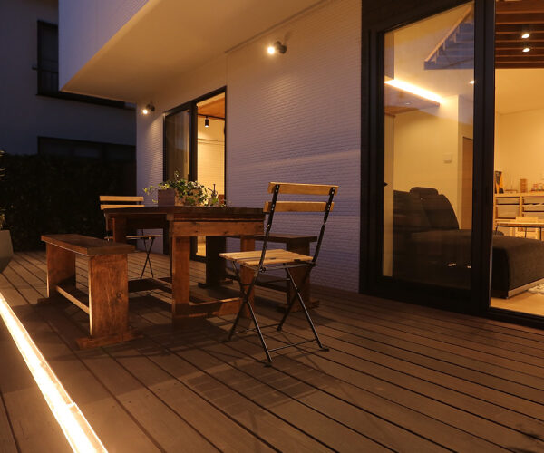 ウッドデッキ外構工事 材料は無垢セラガンバツです。コストパフォーマンスに優れ耐腐久性が高い素材となっております。木の温もりに包まれる素敵なウッドデッキに仕上がりました。間接照明も夜になると雰囲気を変えてくれます。